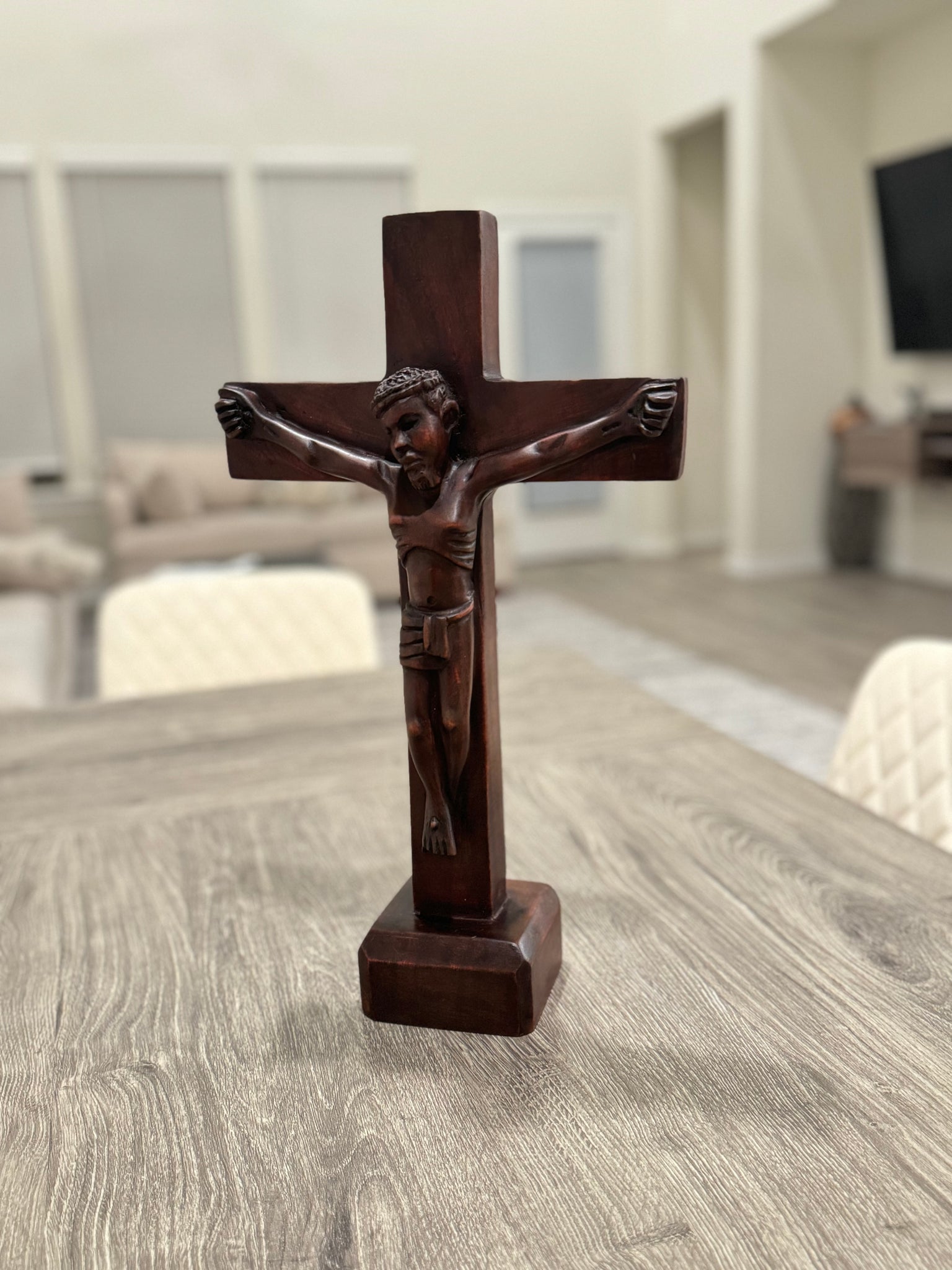 Ideal for prayer rooms, living spaces, or as a meaningful gift, this crucifix brings a touch of spiritual grace and African craftsmanship into your home.