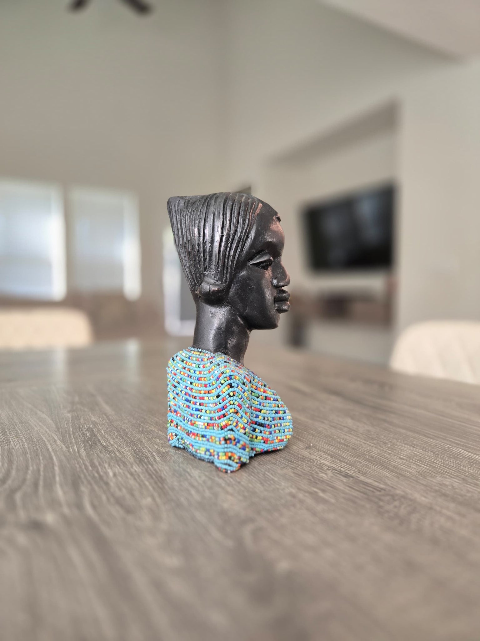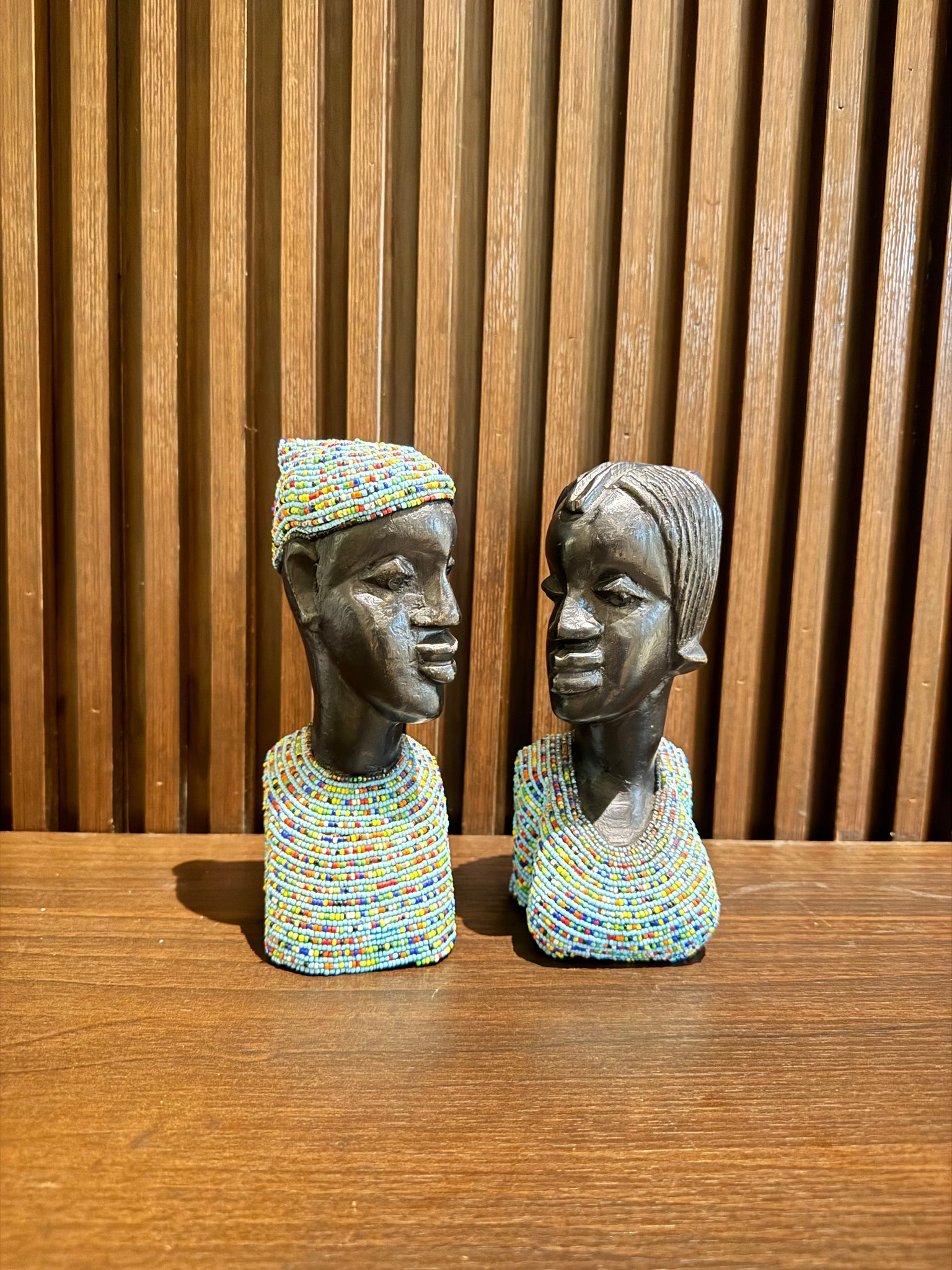 Royalty, carved in wood. The Oba & Olori Busts represent the king and queen — symbols of leadership, unity, and African pride. Decorated with intricate bead collars, these busts embody heritage and dignity.