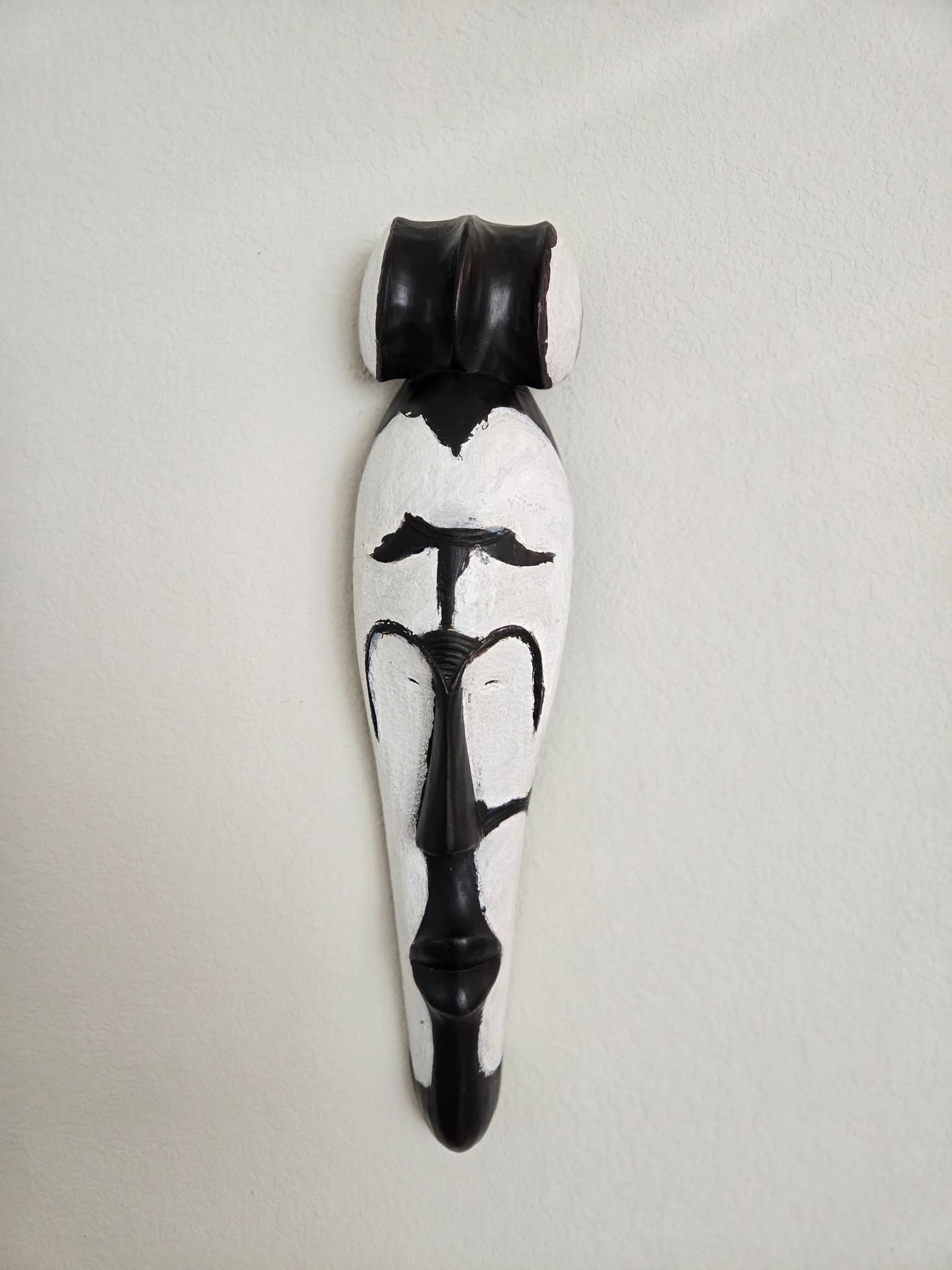 Simplicity, power, and balance come alive in the Okuta Minimalist Mask. Hand-carved in contrasting black and white, it honors the duality of life — light and shadow, strength and peace.